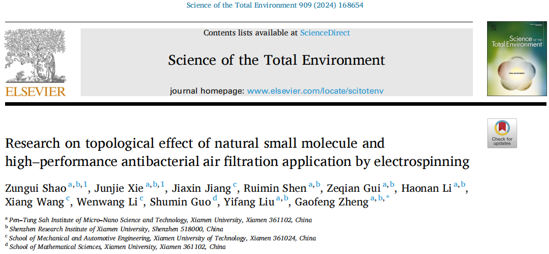 廈門大學鄭高峰副教授:天然小分子高效負載的全生物基高性能抗菌空氣過濾膜